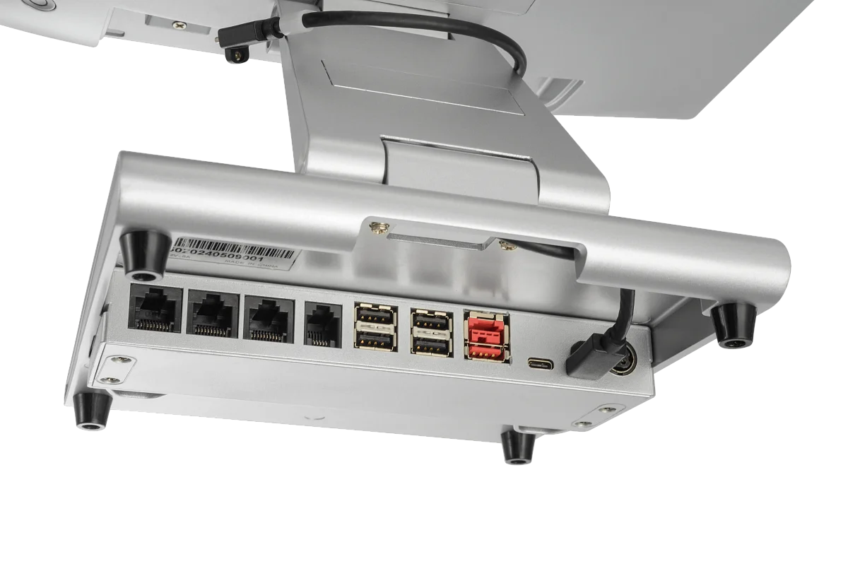 MSR, второй рекламный монитор 11,6”, Wi-Fi/BT, динамики, 3 × COM, 1 × RJ-12, 2 × USB 2.0, 2 × PUSB 12 V, 2 × PUSB 24 V, 1 × LAN, 1 × USB Type-С (питание от терминала)